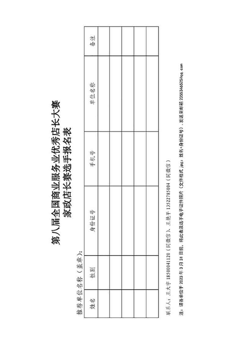 1.各省市家政协会、相关单位选拔和推荐参赛选手,报名时须提交提交选手报名表(见附件)、店长管理PPT和个人展示视频。