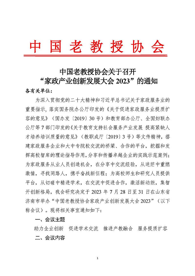家政产业创新发展大会自举办以来,为家政服务企业和大中专院校搭建了合作交流的平台,充分发挥了高校智库的理论指导作用,对家政服务企业发展起到了引领和指导作用。定于2023年7月28至30日在山东省济南市举办“2023家政产业创新发展大会”。
