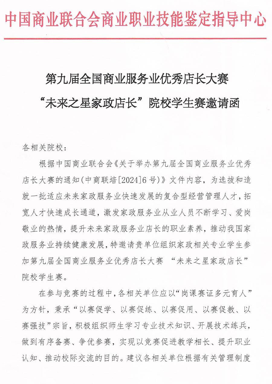 【家政大赛】第九届店长大赛“未来之星家政店长”院校学生赛邀请函