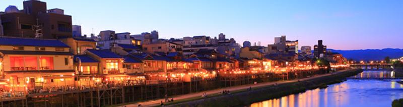 京都的灵气所在,无论冬夏,它安静的贯穿京都的同时,也赋予了古都少有的一份宁静。千年以来,二旁的民居中诞生了很多名人。这里不仅是京都的赏樱名所之路,也是饕餮之路。鸭川 的民居中,隐藏着100多家高档料理店,多为懐石料理和京料理。每到夏季,鸭川的河畔会搭建起高高的露台,一边享用美食,一边感受习习凉风,听着鸭川在身旁悄悄的流过,让人不由得忘记了季节。这种习俗由来已久,这种纳凉方式被称为‘纳凉床’或‘川床’,深受游客和当地人的喜欢。