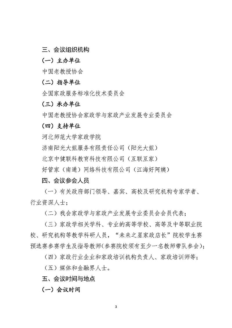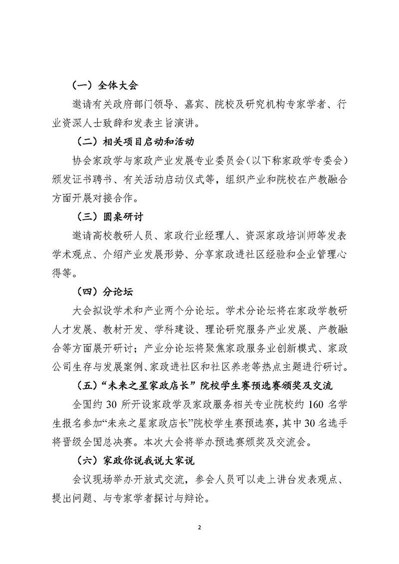本次大会将组织开设家政学、现代家政服务与管理专业的院校师生参会进行学术交流,同时,“未来之星家政店长”院校学生赛预选赛颁奖和交流会将同期举办。